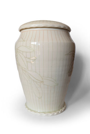 Porcelain memorial vessels offer lasting and attractive protection for funerary ashes. Each piece is made and decorated by hand before being kiln-fired to 2300° for maximum durablility.